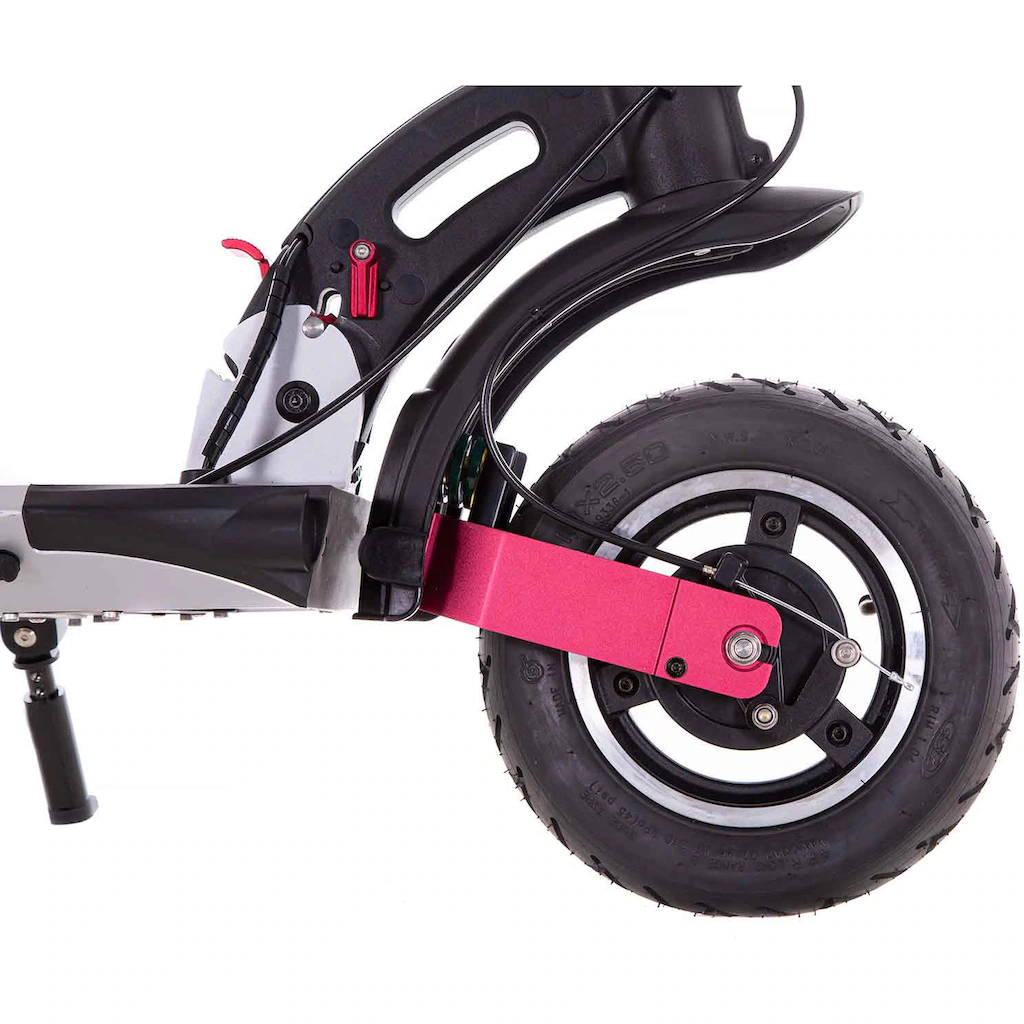 Beim Fahrkomfort lässt sich auch dieses Elektrokleinstfahrzeug nichts nachsagen und ist deshalb vorne wie hinten mit Stoßdämpfern ausgestattet, was hervorragende Fahreigenschaften auf der Straße sowie auch abseits befestigter Wege garantiert. Gebremst wird vorne wie hinten mit wartungs- und verschleissarmen Trommelbremsen.