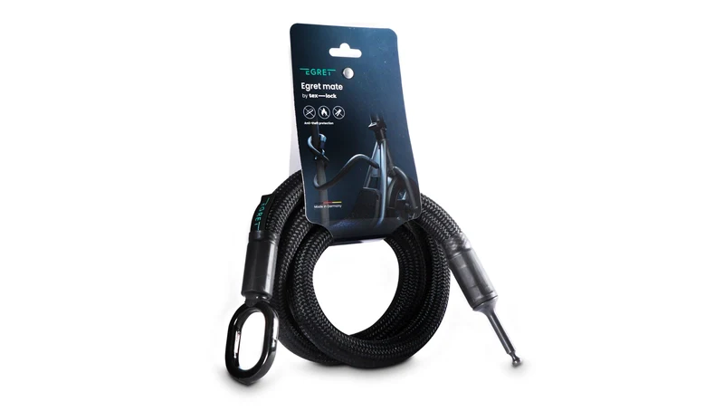 Das robuste Hightech-Textilseil mit gehärtetem Stahlkern widersteht Angriffen mit Sägen, Schneidewerkzeugen und Feuer, während es deinen Fahrradrahmen vor Kratzern schützt. Während der Fahrt kannst du die Rahmenschloss-Einsteckkette einfach in der mitgelieferten Transporttasche verstauen – diese gibt’s bei Egret mate by tex-lock kostenlos dazu!