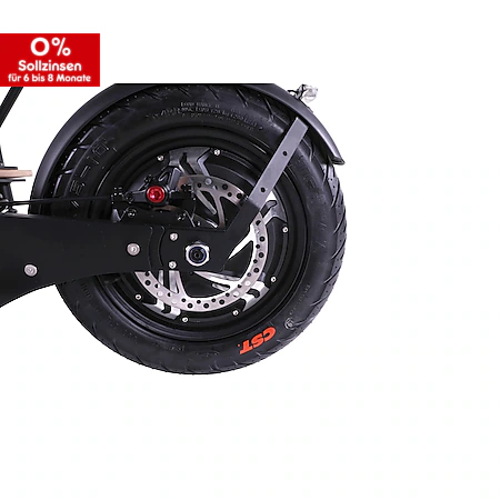 Beim Revoluzzer 4.0 sind bereits serienmäßig große Reifen mit 40 cm Durchmesser montiert.Die Komfort-Federung vorne und hinten runden das Fahrerlebnis ab.