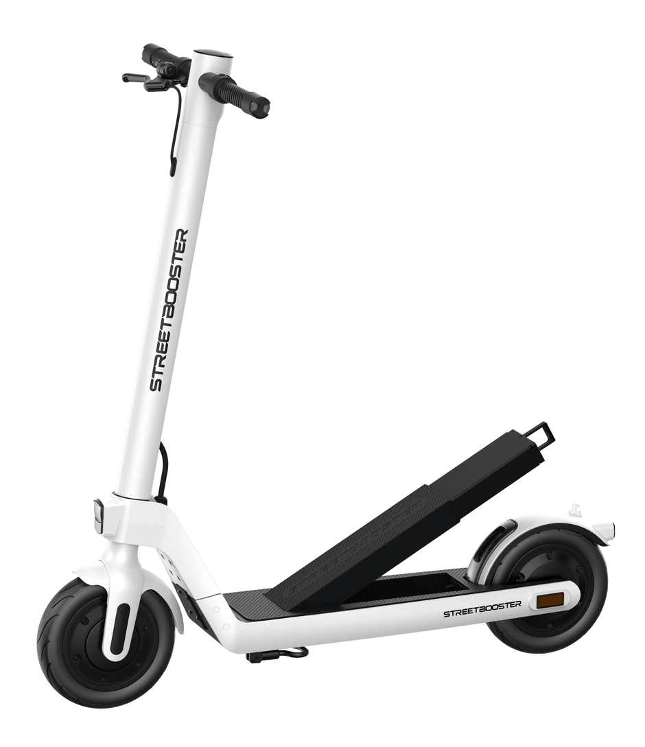Erlebe ein Fahrgefühl der absoluten Spitzenklasse. Der zuverlässige und kraftvolle STREETBOOSTER Sirius mit seinem praktischen Wechsel-Akku-System ist die unumstrittene Wahl für alle, die ihren EScooter flexibel einsetzen möchten.