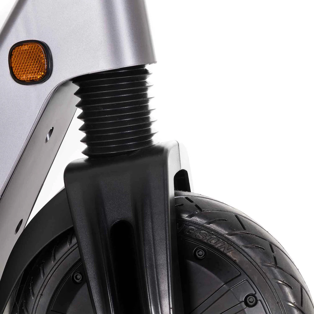 Der extrem robuste und nahezu unkaputtbare bürstenlose Nabenmotor im Vorderrad, in Kombination mit den ebenfalls hunderttausendfach im Sharingbetrieb erprobten & bewährten 10 Zoll Gummireifen, garantieren zuverlässigen Langzeitbetrieb und Funktion. Die Reichweite des SXT TITO beträgt bis zu 25 km. Zugeladen werden darf bis zu 100kg die von 36V Nabenmotor an der Vorderachse mit max. 600W angeschoben werden. Die Bremse besteht aus einer extrem verschleiß- & wartungsfreien Trommel- sowie elektromagnetischen Bremse.